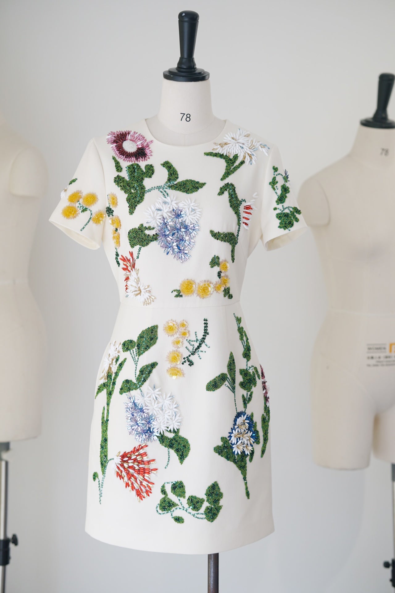 Spring/Summer 24 Rhinestone Flower Embroidery Silk Wool Dress
