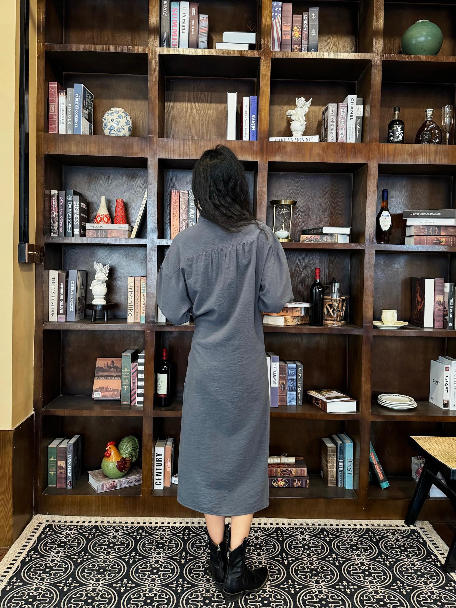 The classic shirt design, coupled with an asymmetric button design, and the carefully machined pleats on the back create a sense of volume and accommodate the body shape. The cuffs are embellished with two buttons and can be freely adjusted in size.